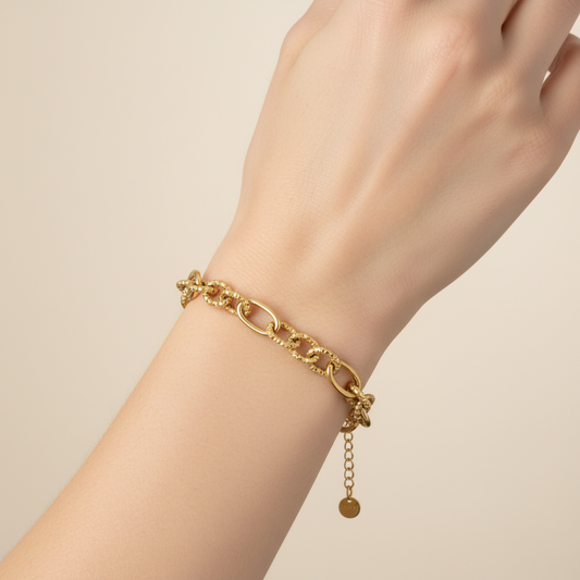 I nostri gioielli sono realizzati principalmente in acciaio inossidabile. Materiale noto per la sua durevolezza, resistenza alla corrosione e proprietà ipoallergeniche. Questo metallo è molto apprezzato per la sua capacità di resistenza all'usura quotidiana senza ossidarsi o arrugginirsi.