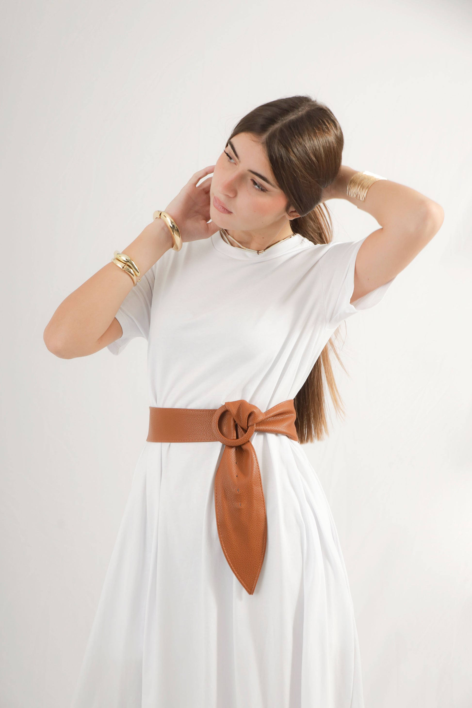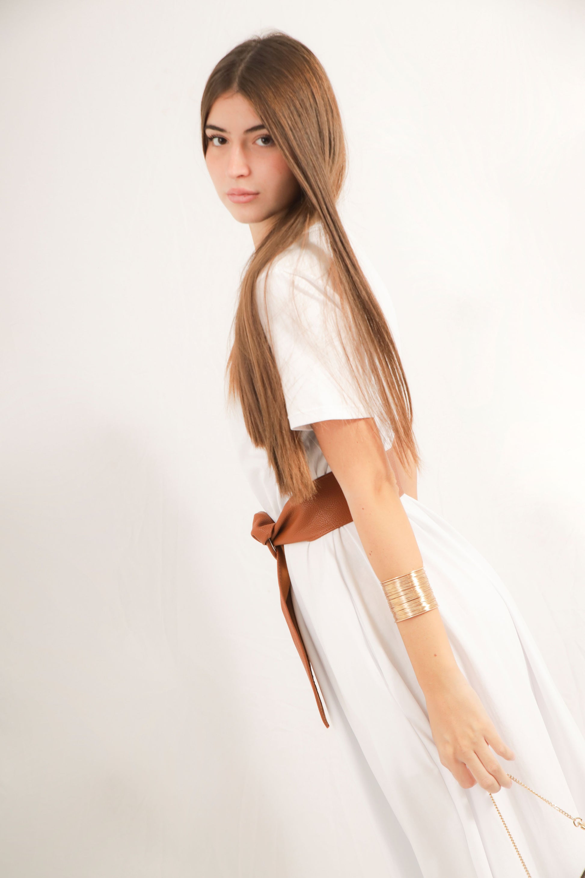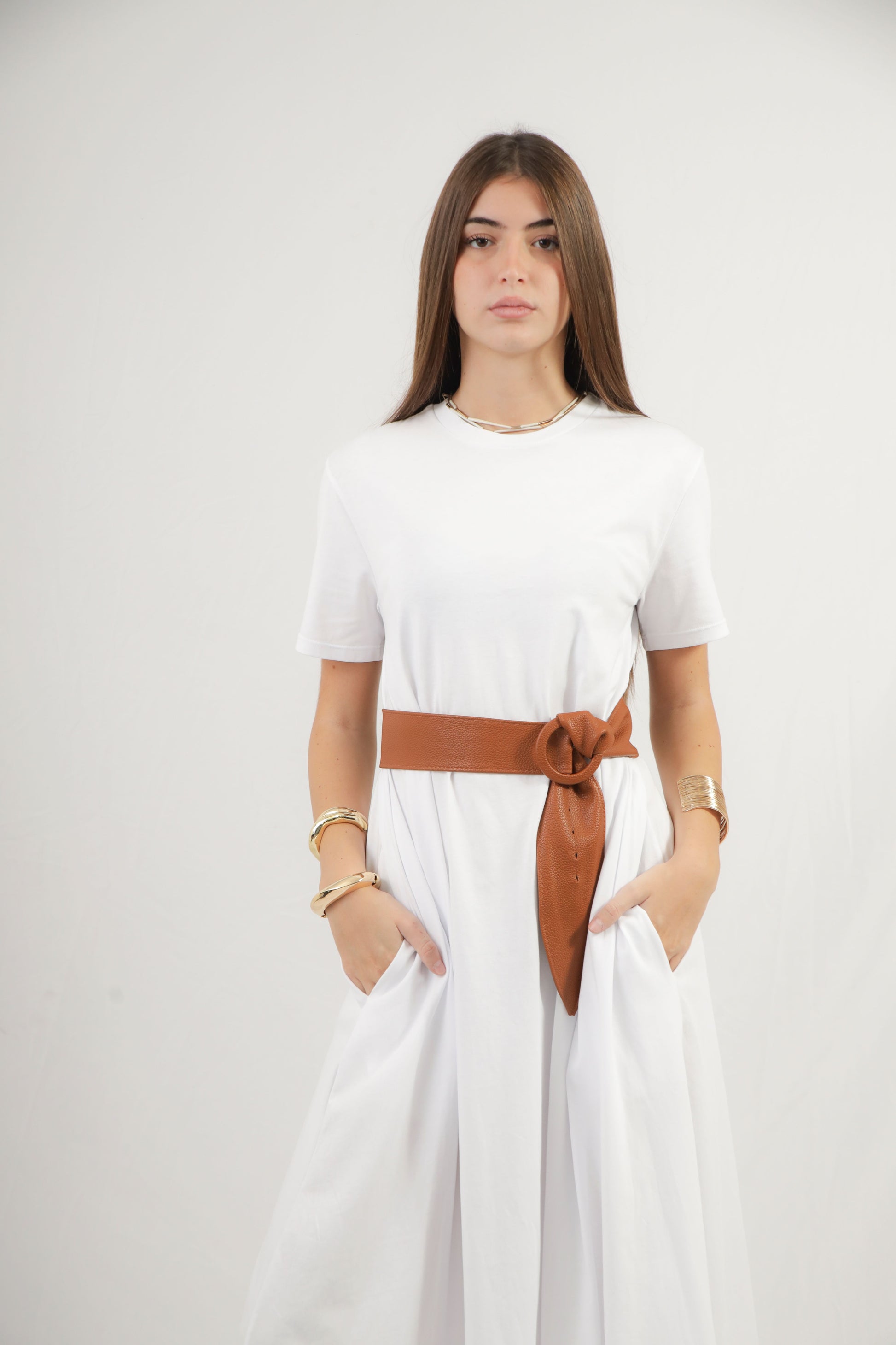 Questo abito lungo in cotone presenta un morbido fit che si adatta alla figura. Con uno scollo rotondo e tasche laterali, è perfetto per un look casual ma elegante. La sua linea svasata dona una silhouette sinuosa e comoda. Realizzato in cotone, garantisce freschezza e comfort per tutta la giornata.