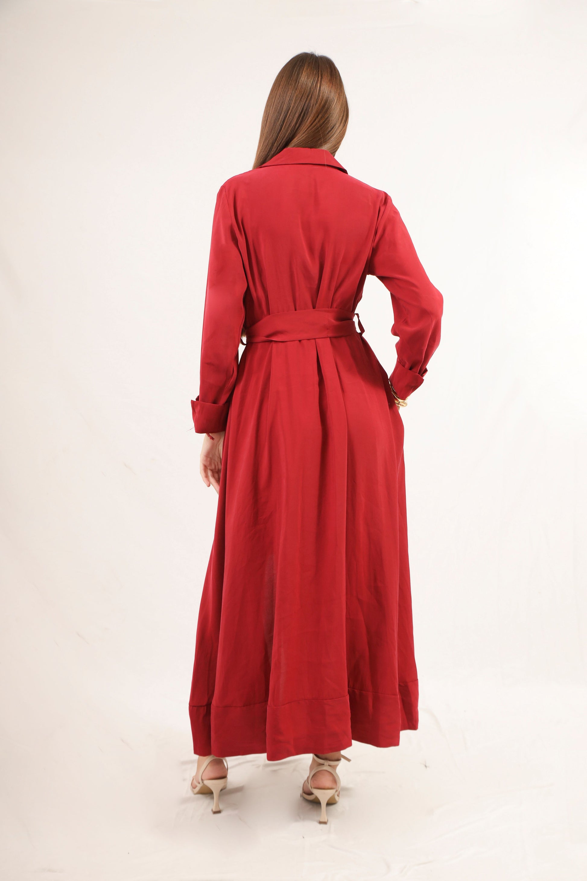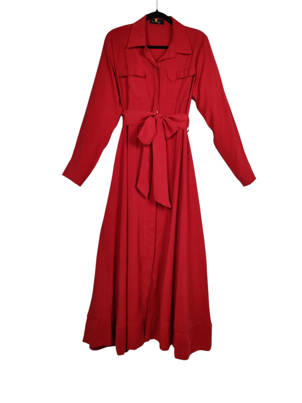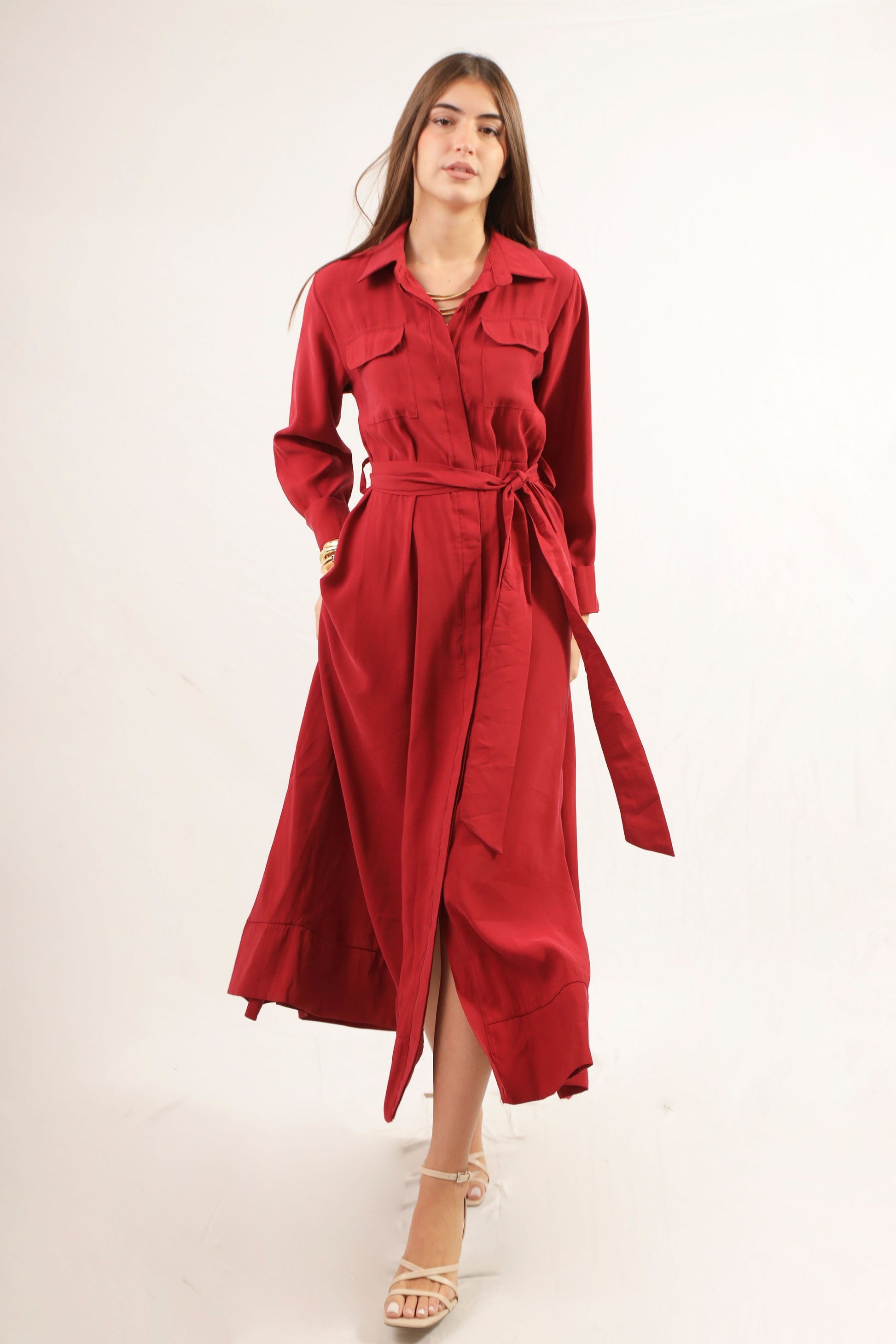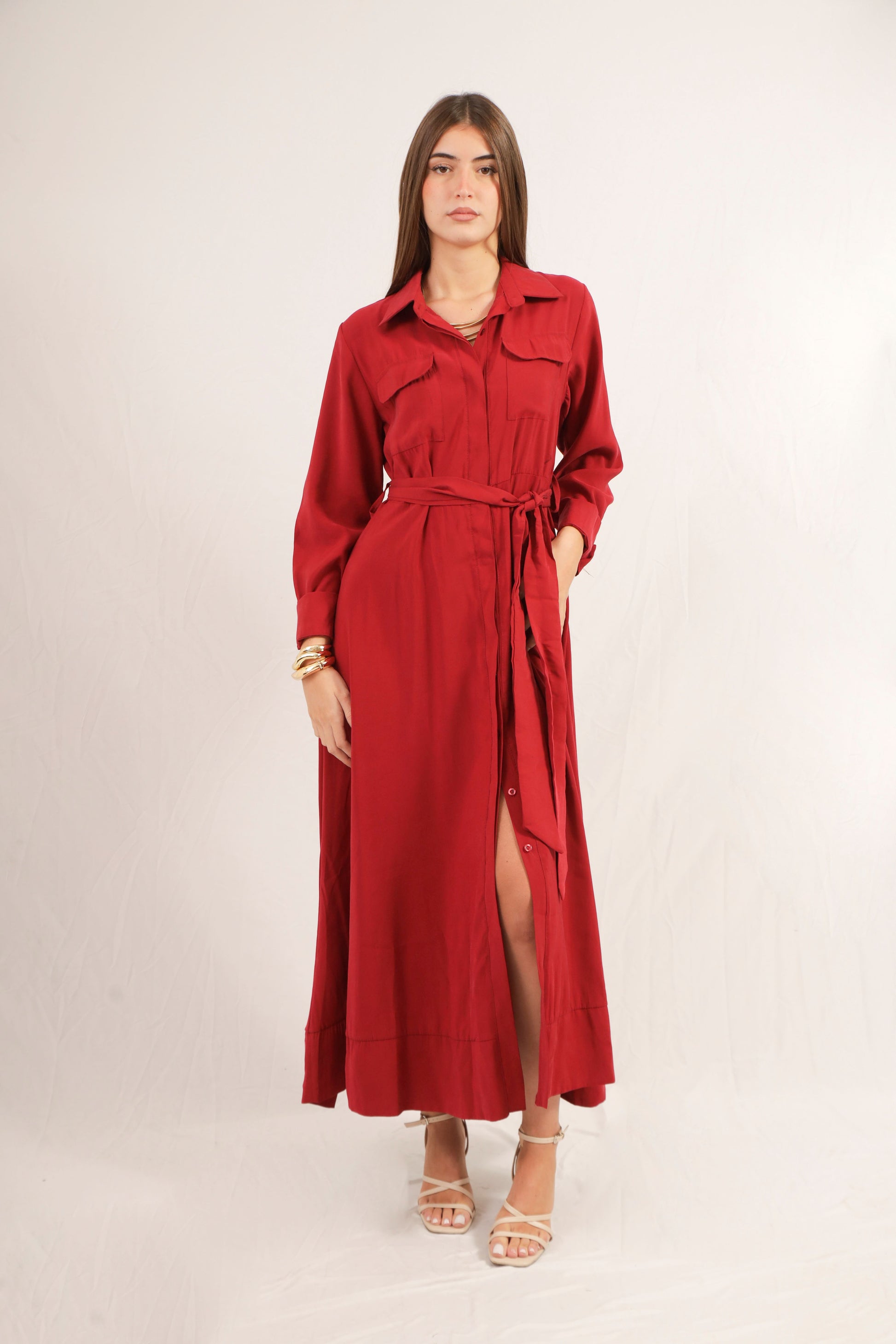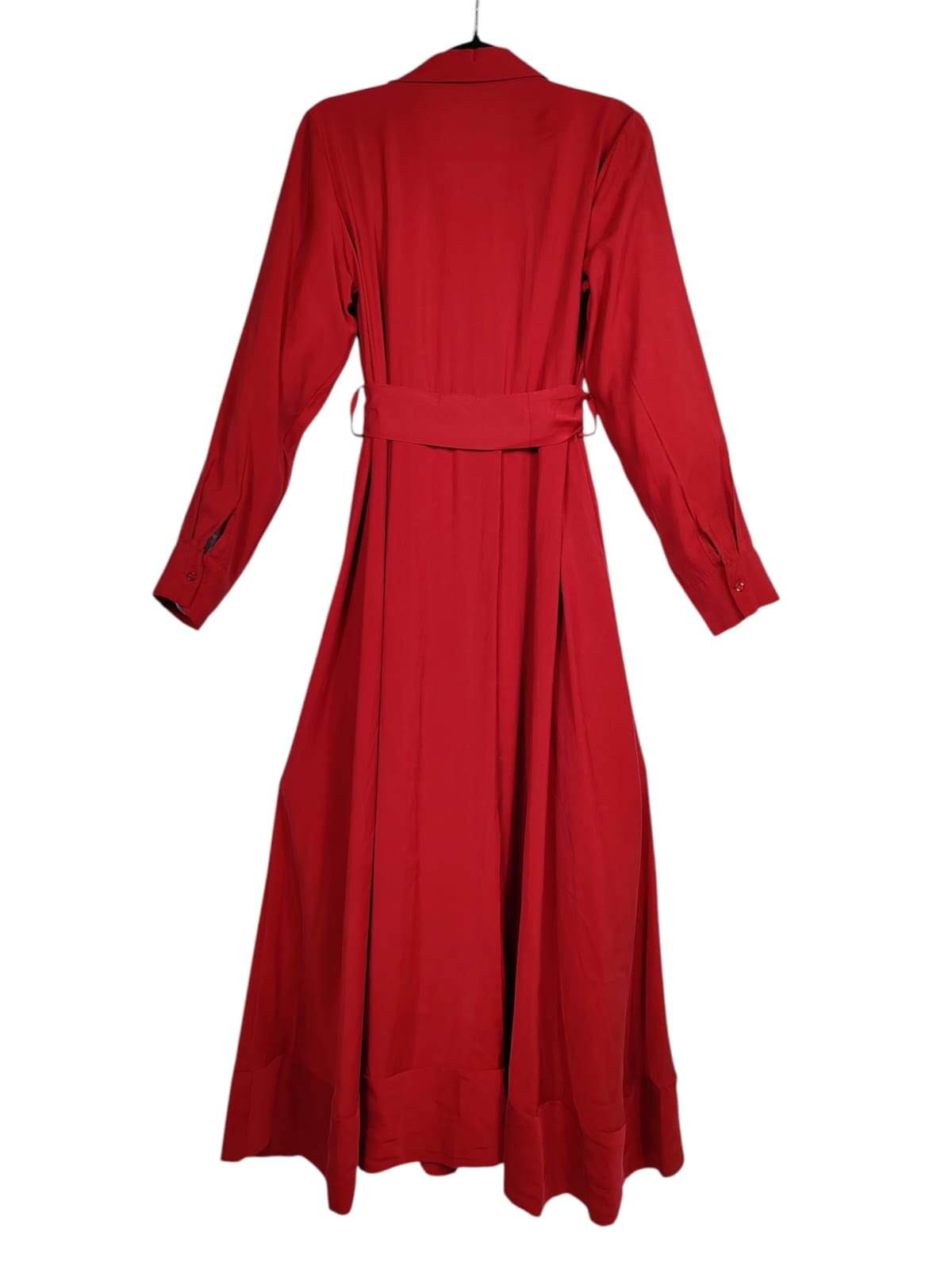 Vestito midi con collo a revers e maniche lunghe con polsino.