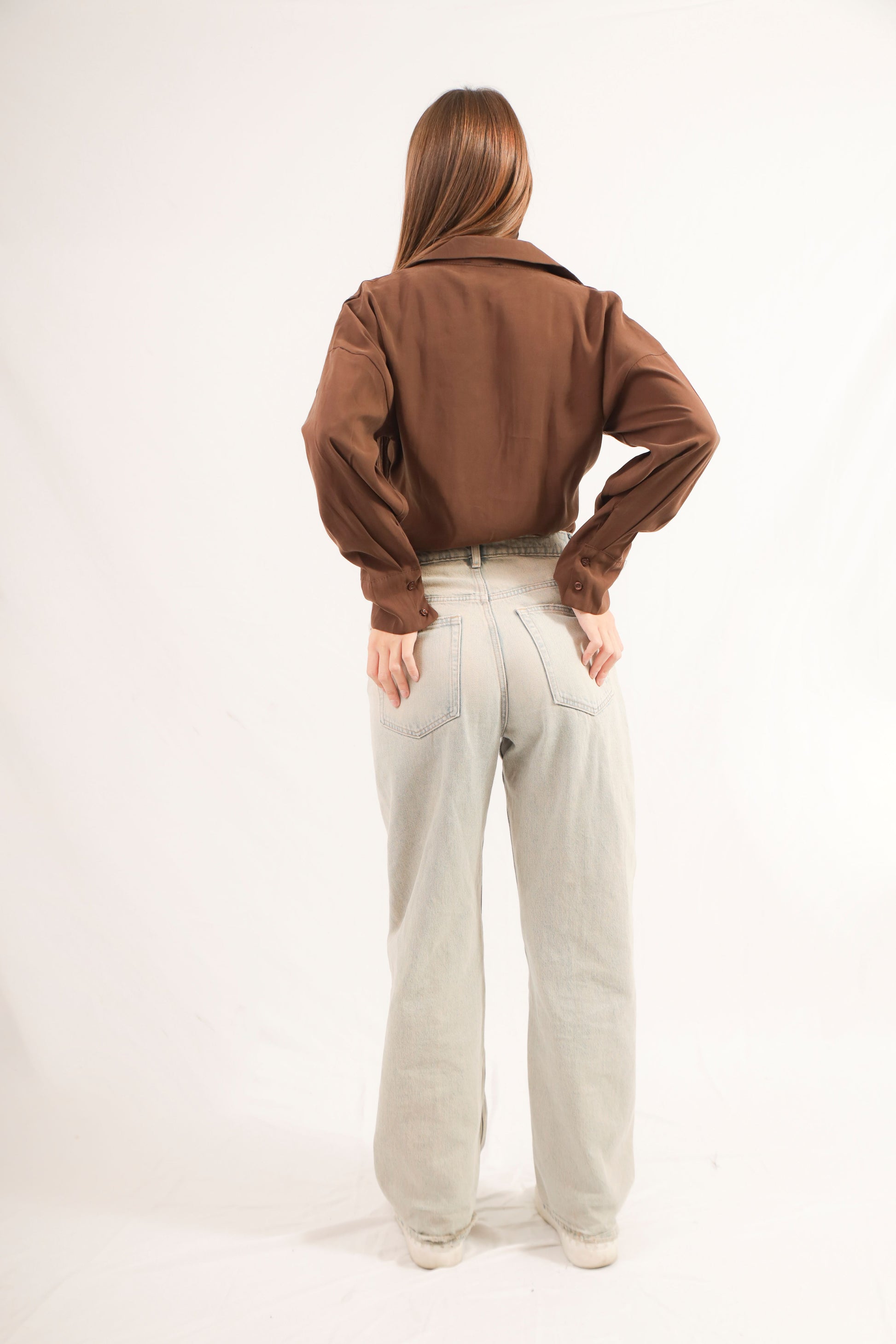 Camicia morbida con spalle cadenti. Collo a reverse e polsini con bottoni.